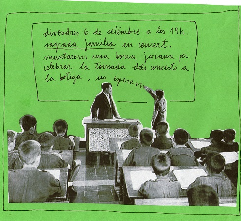 A més, podrem escoltar com sonen les noves cançons i com han resolt la nova formació del grup. Per a aquesta ocasió, i aprofitant que son festes al barri, farem un concert a lo grande, i guarnirem la botiga i el carrer per donar la benvinguda a la nova temporada de concerts, joder que ens fa molta il·lusió.