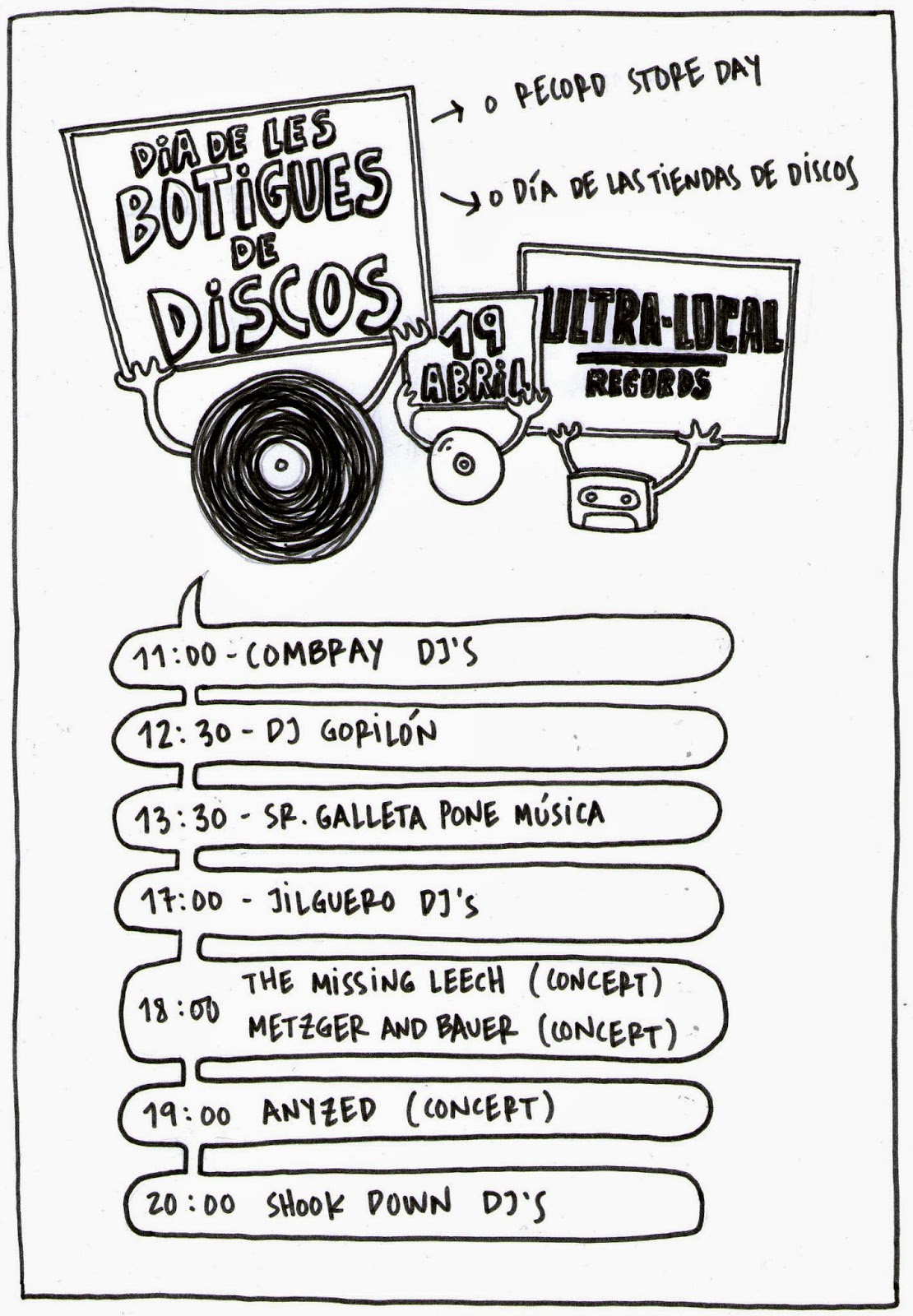 Acabem d’arribar a casa després del segon any del Día de las Tiendas de Discos a Ulra-Local Records. La Carme intenta dormir i jo, el Raül, intento no dormir. Vull donar les gràcies, però no unes gràcies de facebook, volia fer-ho més extended play i per aixó tiro del bloc.