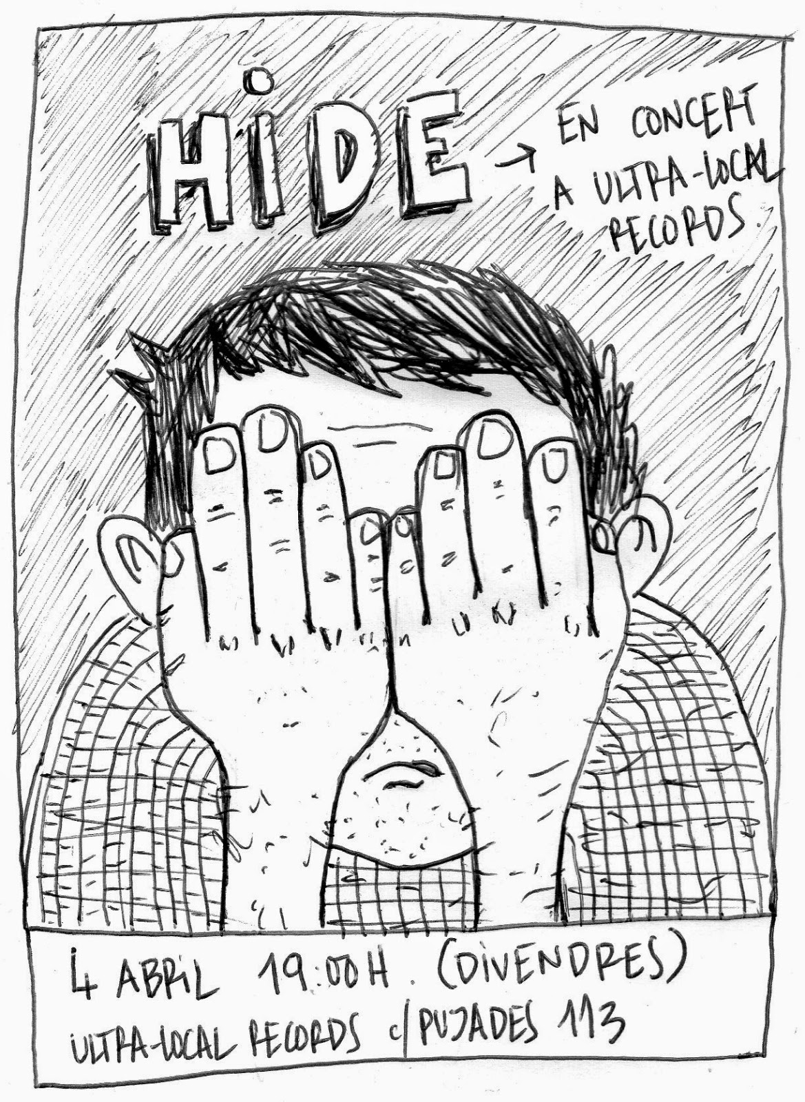 Però abans tenim també mandanga, i comencem amb el concert del proper divendres 4 d'abril amb Hide. Directament des de l’escuderia de Siete Señoritas Gritando, arriben a Ultra-Local Records els Hide, projecte personal del cantant i guitarrista Alex. Hide és pop amb caràcter rock i presentarà les cançons en format acústic. Una bona manera de descobrir-los.